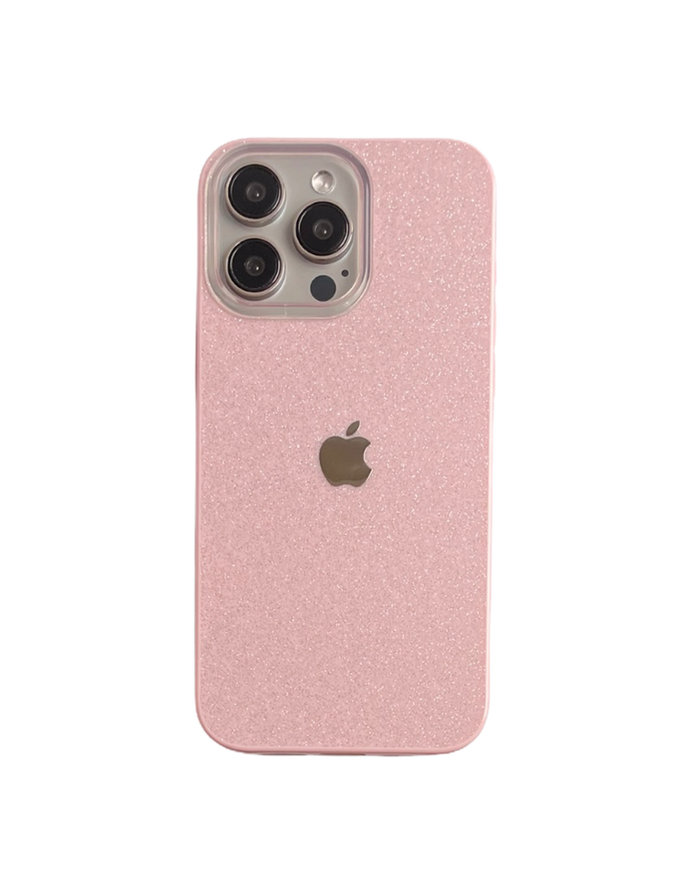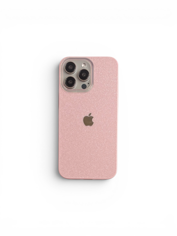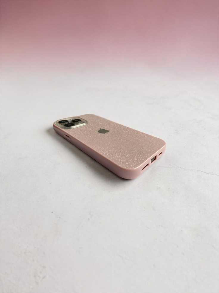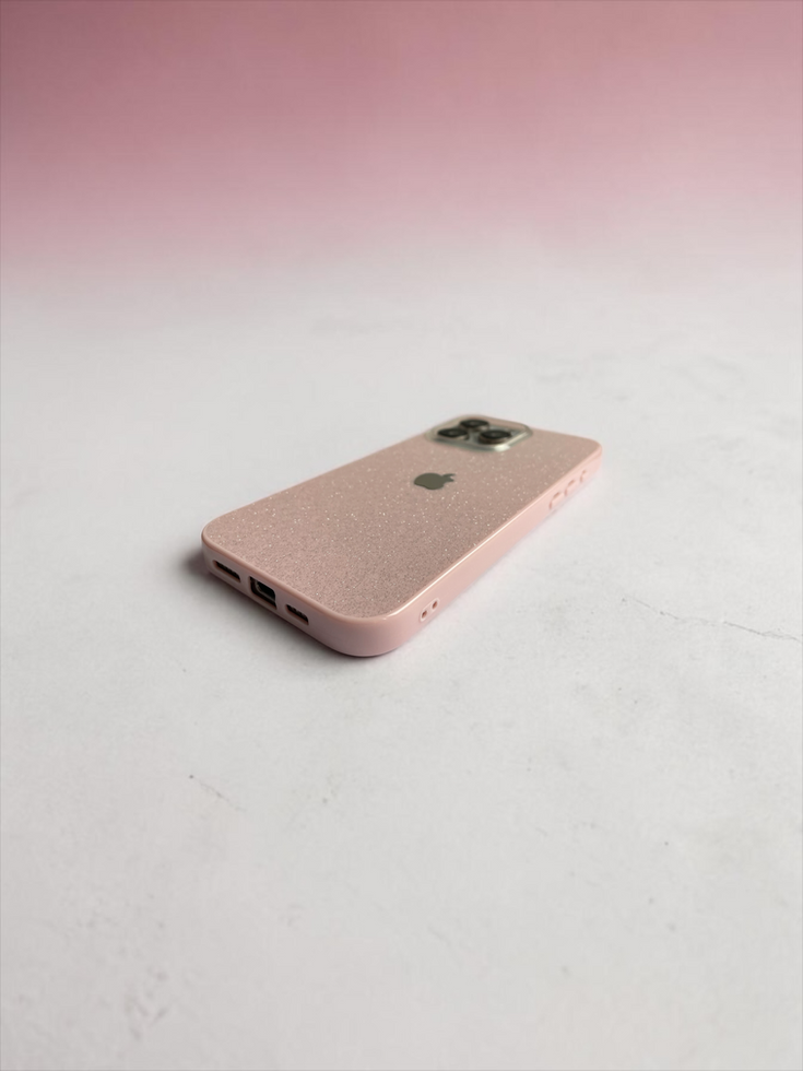 iPhone Uyumlu Simli Silikon Logolu Pembe Telefon Kılıfı